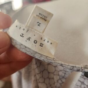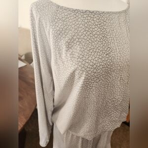 soft is an understatement for this daytime dress- print is relaxing to look at- soft pattern- pretty mineral blue/grey- size L 3/4 sleeve