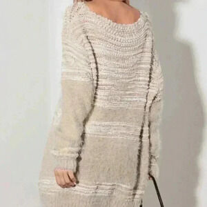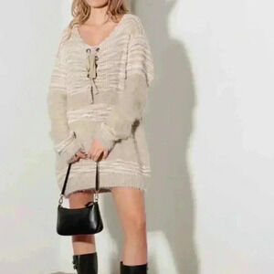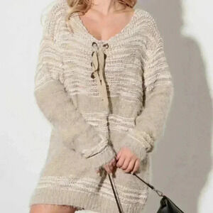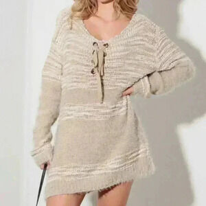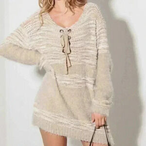Relax Fit Mixed-Stitch Front Tie Tunic Sweater Dress
