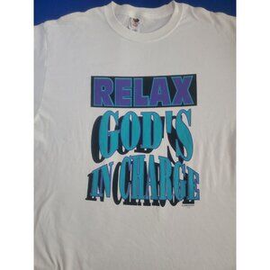 Relax God's In Charge Vintage Jesus White T-Shirt Men's Size Large