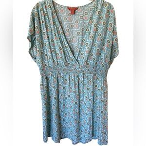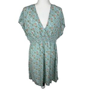 Relax Tommy Bahama Dress Women XL Green Circles Print Fit Flare Surplice Mini