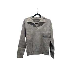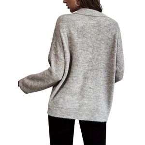 Relaxed Fit Sweater Loose Lapel Large Pocket Gray