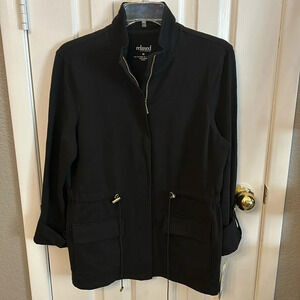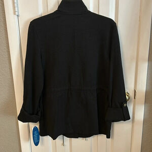 Relaxed by Charter Club Women’s (M) Black Full Zip Gold Hardware Roll Tab Sleeve Jacket NWT.