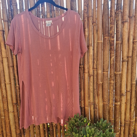 Wet seal light, stretchy comfy tee shirt. Back covers the butt so super cute with leggings. Front goes shorter!