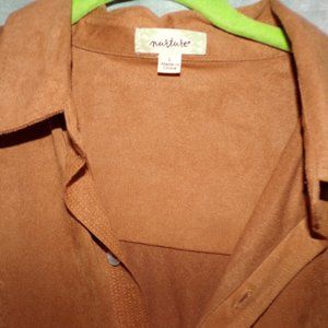 Relaxing NURTURE Sz L Camel Color Suede LS Top Z22