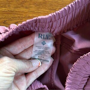 Two side zipper pockets, comfy elastic drawstring waistband. These are more of a salmon color as you see in the stock photos. I was having a hard time capturing the color with the lighting.
