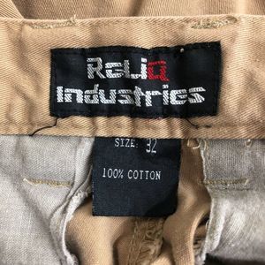 ReliQ Industries Cargo Shorts Mens 32 Khakis Tan Hook & Loop Cotton Casual 90s