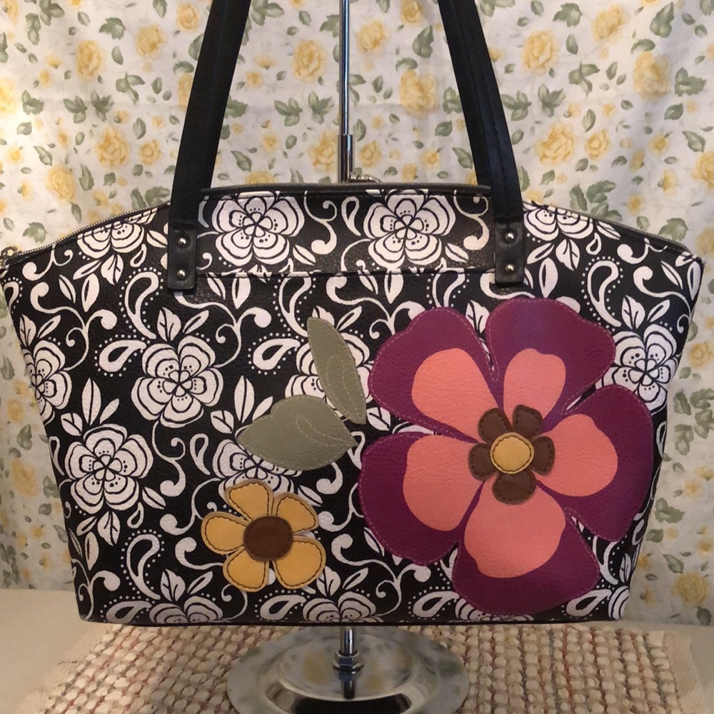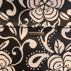 Relic medium sized tote. Great condition barely worn. One zip pocket and two slip pockets inside with tan cloth interior. Has two good sized slip pocket on both front and back of bag. Zip top closure.