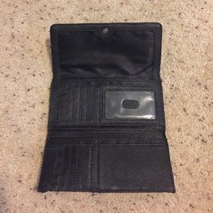 Adorable chevron print black wallet! The back has a removable coin purse (as pictured) and you can take it out and slide your phone in there! There's another full sleeve on the side (as pictured) with plenty of slots and pockets inside. Gently used. Non smoking home.