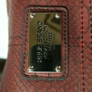 Relic Brand Collection Handbag in a non leather snake print. This bag is preowned in almost new condition. The color is a burnt red with lots of pockets to store your belongings. match it up with a great outfit or with some shoes from my closet! Please review the pictures to to evaluate. Don't forget to bundle and save!