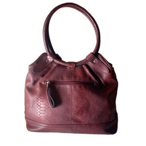 Relic Burgundy Crocodile Embossed Leather Shoulder Purse.