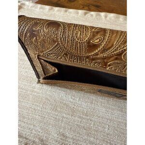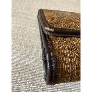 Relic Embossed Leather Wallet With Paisley Design & Snap Closure Tan