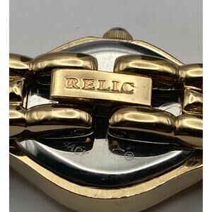 This Relic Folio women's petite watch is in very good condition and features a new battery. The watch has a 20mm case and a bracelet wrist size of 5.5-5.75 inches. There are some scratches on the back of the watch. Please see all photos