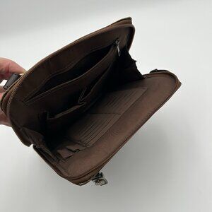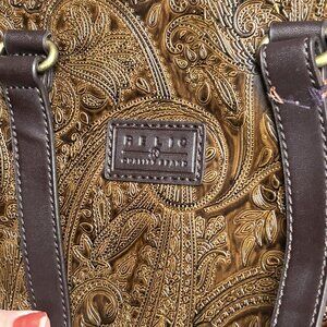 Relic Fossil Organizer Purse Brown Embossed Leather Shoulder Bag Paisley
