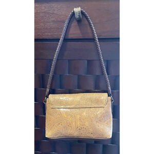Relic Paisley Brown Leather Embossed Purse With Braided Strap & Magnetic Closure