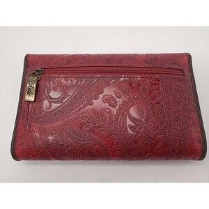 Relic Red Embossed Paisley Design Tri Fold Checkbook Wallet Boho