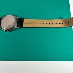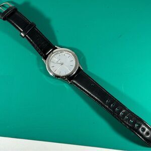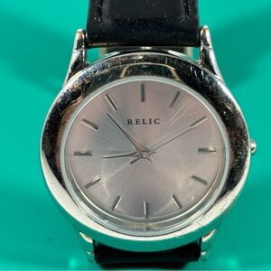 Relic Silver Tone Dial Round Case Black Leather Band Watch