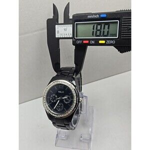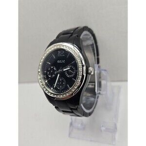 Relic Starla ZR15563 Black Resin Multifunction Crystal Bezel Watch New Battery
