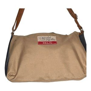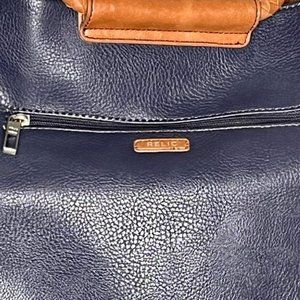 Relic Versatile Pebbled Faux Leather Bag - Navy/Tan - 13" w x 3.5" d x 11.5” h