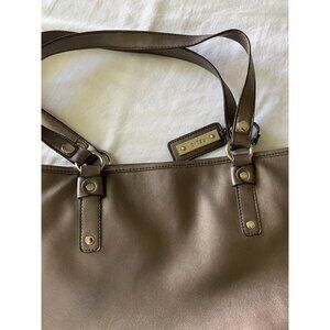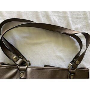 Relic Women Purse Taupe Faux Leather Magenta Flower Applique Boho Metallic Fairy