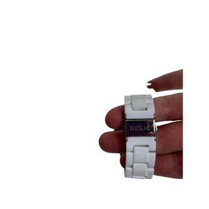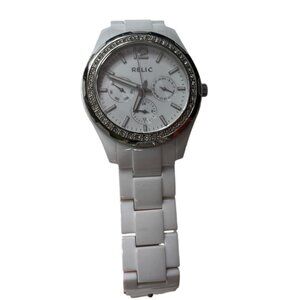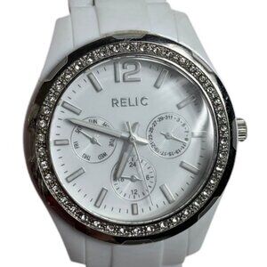 Relic Women's Analog Bracelet Wristwatch Watch White Silver Tone Faux Jewels 6"