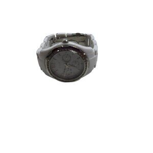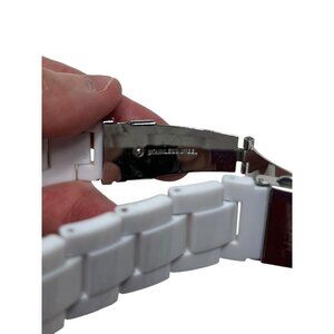 Color: White Resin Band, Silver Tone Stainless Steel Clasp