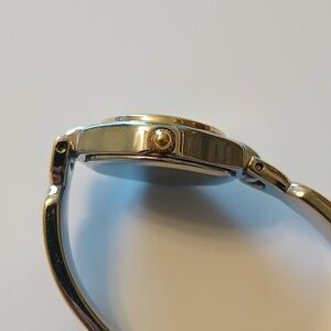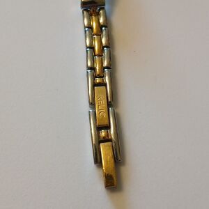 Needs a new battery. The wrist size is 5 1/2-6 inches. There are scratches on the crystal, case, and band. It's a casual preppy style. Please view the photos. Thank you!