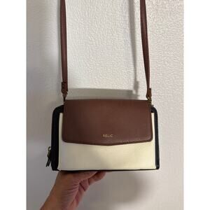 Relic women’s wallet with strap in great condition. Features a stylish light brown overlap design with beige and black background pattern. Leather-look exterior (likely faux leather) with interior card slots and compartments to keep essentials organized. Includes strap for convenient hands-free carrying. Compact yet functional, perfect as a wallet or small crossbody.