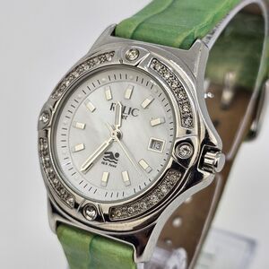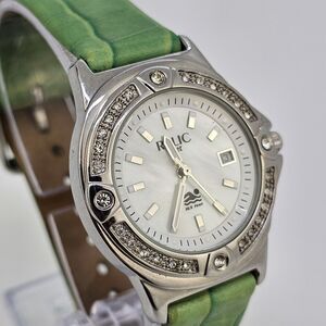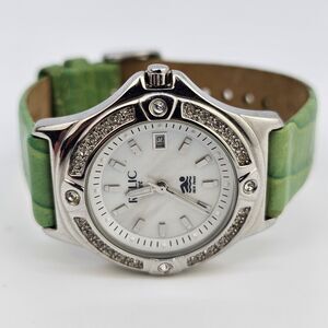 Relic Women's Watch 32MM MOP Gray Dial Date Green Leather Bands New Battery