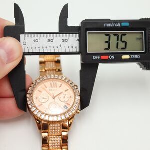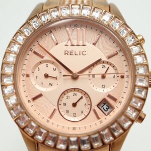 Relic Women's Watch Rose 37mm Gold Tone Day Date Pave Bling with New Battery