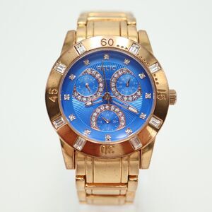 Relic Women's Watch Rose Gold Tone Blue Day Date Pave Bling w New Battery