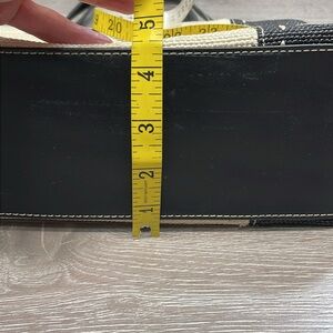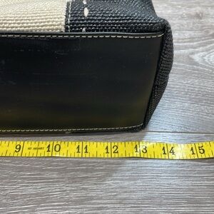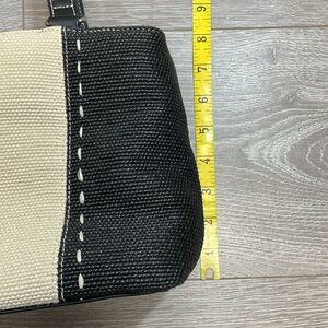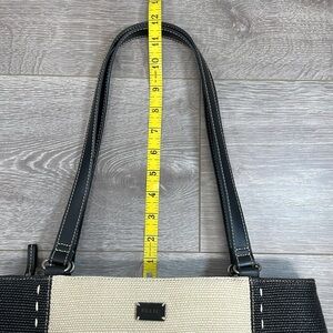 Relic Vintage Woven Handbag in Black and Cream. Good preowned vintage condition. Outside is in great condition other than some marks on the bottom. Inside has some discoloration from the adhesive along the top of the one side and in the slip phone pocket, otherwise it is in great shape. There are 3 sections that have a magnetic snap closure. One zipper compartment, one with a slip pocket and the other with a zipper pocket. Please see photos for approximate measurements and details. Item may show difference in color based upon photography and perception. Photos are part of the description, as everyone’s level of condition may vary. From smoke free and pet free home. All packages are shipped the same or next business day.
