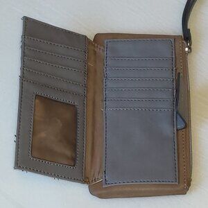 Relic Wristlet Wallet Neutral Normcore Classic accessory in great colors of tan, cream, and gray - perfect for fall and winter. Functional and effortless organization for your ID, credit cards, and small items.