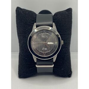 Relic ZR12053 Men's Black Leather Analog Gray Dial Quartz Genuine Watch JD364