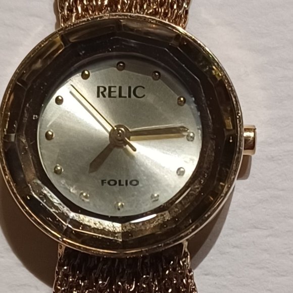 Ladies relic watch, with net style band. Beautiful piece, small scuff on back.