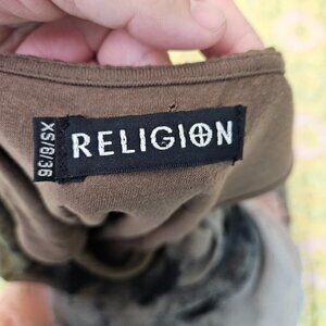 Religion Asymmetrical Draped Sleeveless Dress Brown Stretch Lined Women's Sz XS