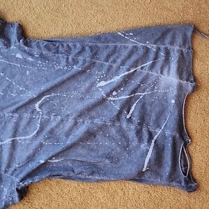 Please note that this is a distressed t-shirt. The markings, holes, etc.. are the style.