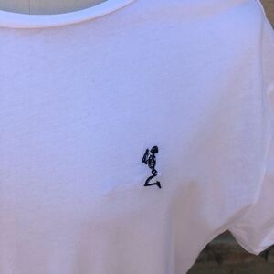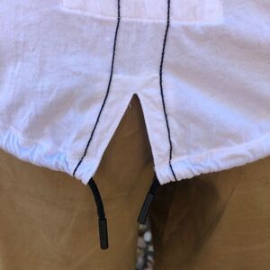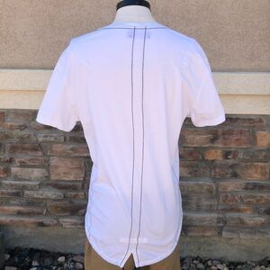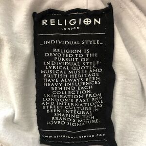 Religion brand white crew neck tee with drawstring hem split tail design. Features short sleeves, black external stitching, & a rounded, drawstring hem with split tail design on the back. Religion logo on the front right chest. Religion branding tag as shown in pic 5 is on the inside of the tee. Edgy, street style! In very good preloved condition with minimal wear. Size XXL. Approximate measurements lying flat: 21.5” from pit to pit & 27” in front & 31” in the back from shoulder to hem. Bundle