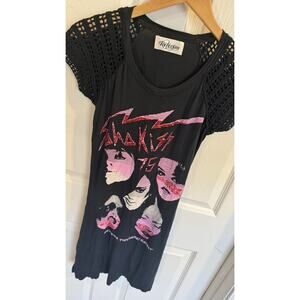 Religion UK Kiss ‘75 SoHo Crochet Sleeve T-shirt Dress Beading Hand Made XS/8/36