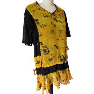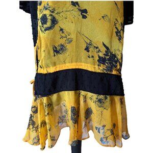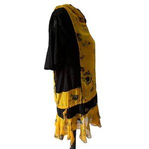Religion We Live In Black Sheer Lacy Mini Dress Sz XS Black and Yellow Short Sle