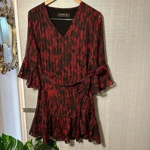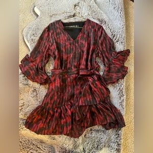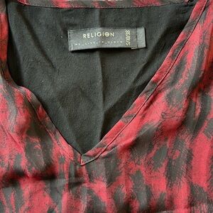 Religion clothing we live in black red faux wrap statement sleeve tie dress sz S