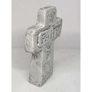 This religious 4¾" clay cross is a handmade collectible featuring the Bible verse "Walk By Faith Not By Sight" from 2 Corinthians 5:7. Made with clay, this cross symbolizes faith in Christianity and serves as a reminder to rely on one's faith rather than on human senses. Perfect for Christians looking to add a spiritual touch to their home décor or for collectors of religious items, this cross embodies the values and beliefs of the Christian faith.