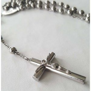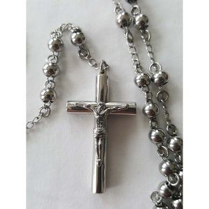 Religious Catholic Rosary - all metal beads, cross, and medallion
