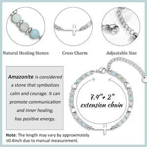 Features: This beautiful bead chain bracelet features a polished stainless steel cross and 4mm natural stones, including Amazonite, believed to bring positive energy, peace, and strength. The bracelet is lightweight, comfortable, and adjustable to fit most teens and women.
