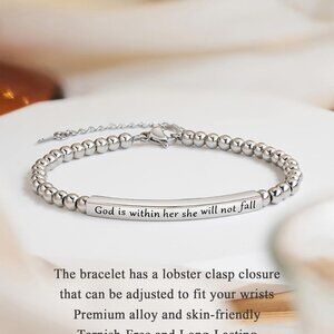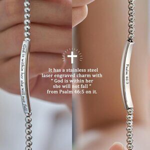 Features: Beautiful stainless steel bracelet with a lobster clasp, adorned with cubic zirconia accents. Features the uplifting Bible verse "God is within her, she will not fall"—perfect for daily encouragement. Comes with a heartfelt blessing card, making it a thoughtful gift for birthdays, confirmations, graduations, or any special moment.