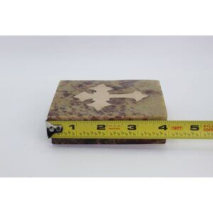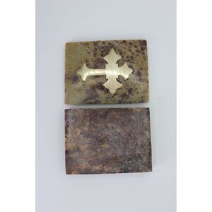 Religious Gift, Stone Trinket Box with Brass Cross Inlay, 4x3"