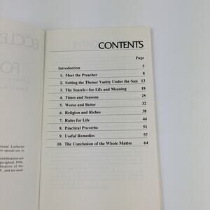 Notes: Includes (1) God Speaks to Me in the Psalms by Carla Holtermann and Vivian E. Thoreson (2) Share God's Love Commissioned by The International Lutheral Women's Missionary League 1980 (3) Ecclesiastes - A Word for Today 1973 (4) Great Pray-ers of the Bible by Louise M. Mueller Edited by Board of Parish Education Staff 1973 (5) Faith Alive A Study of Romans 1985