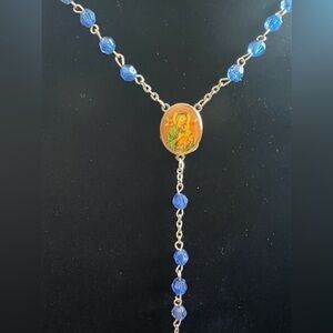 Rosary with acrylic blue faceted beads and Virgin Mary medalion
