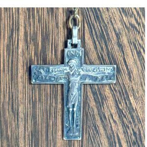Religious antique French silver Christian catholic crucifix pendant cross Rosary