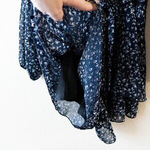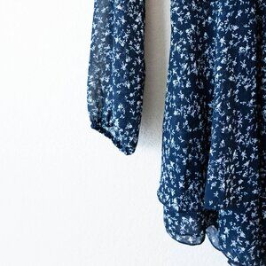 Relipop Navy Blue Floral Romper Dress Size XL Long Sleeve V-Neck Ruffle Hem