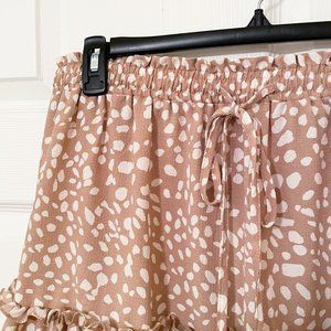 Relipop Tan Leopard Tiered Mini Ruffle Skater Skirt
